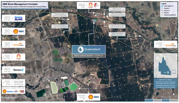 Das für den QBMC vorgesehene Gelände liegt inmitten der wichtigsten Produktionsregionen der CSG-Industrie und profitiert von einer gut ausgebauten Infrastruktur. Hochspannungsleitungen, ein regionales Umspannwerk sowie ein geplantes Erneuerbare-Energien-Zentrum befinden sich direkt in der Nachbarschaft. Über die Kogan Condamine Road ist das Areal optimal angebunden, während die Nähe zur Kenya-Chinchilla-Pipeline und zu landwirtschaftlichen Flächen die Nutzung des aufbereiteten Wassers für Bewässerungszwecke oder die regionale Wasserversorgung ermöglicht.
