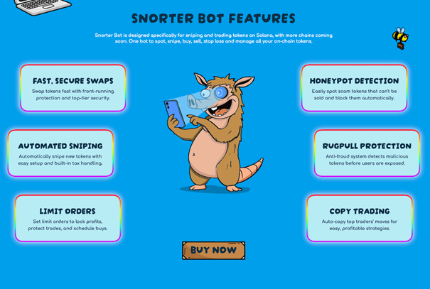 Dank der Wahl von Solana als beheimatete Blockchain erhält der Snorter Bot einen Geschwindigkeitsvorteil. Zudem können somit nicht einmal die Multichain-Trading-Bots auf Ethereum mit seiner Leistung mithalten. Außerdem soll er nach Solana ebenfalls für Binance, Ethereum, Base und Polygon seine Dienste anbieten.