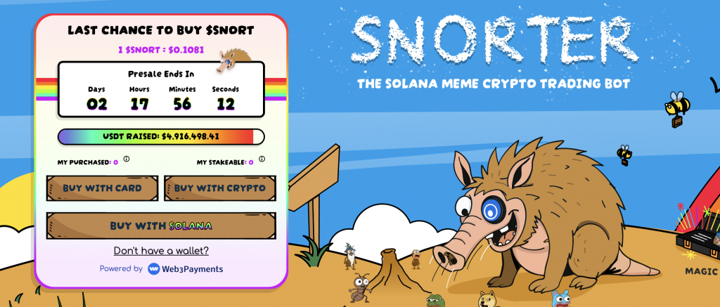 Ein Projekt, das derzeit besonders im Fokus der Anleger steht, ist Snorter ($SNORT). Es geht über einen typischen Meme Coin hinaus und bringt zusätzlich einen Trading Bot auf den Markt, der den Kryptowährungshandel erheblich vereinfacht. Der Bot ist direkt in den Telegram-Messenger integriert, wodurch er sich besonders leicht bedienen lässt und eine niedrige Einstiegshürde bietet.