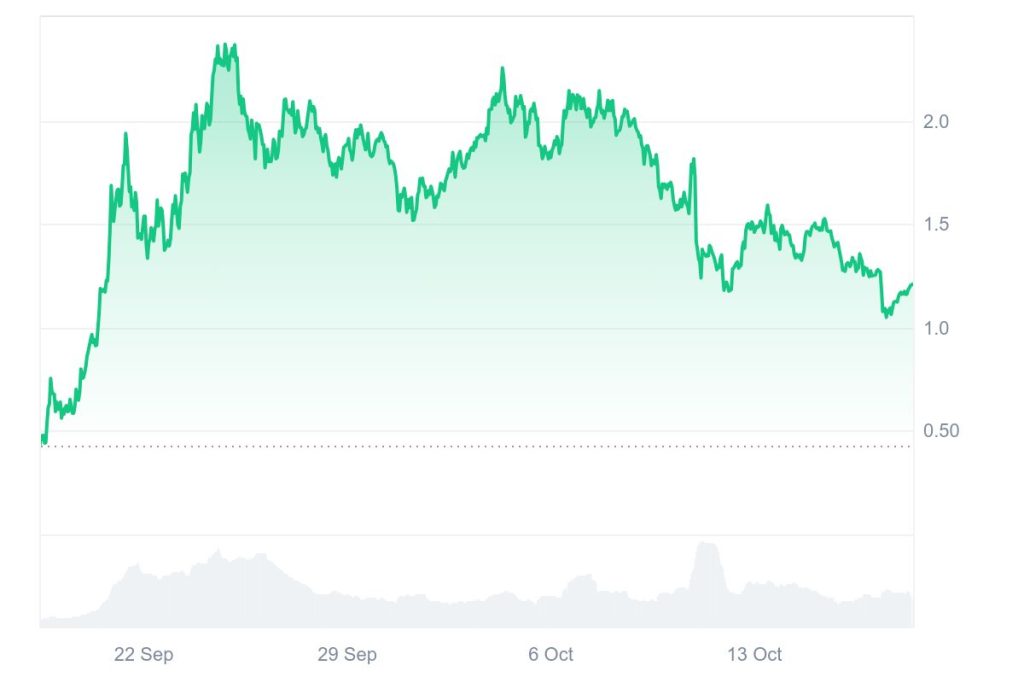 ASTER ist die native Kryptowährung der gleichnamigen neuen DEX-Krypto-Handelsplattform Aster, die Branchengrößen wie Hyperliquid Konkurrenz machen will. Seit dem Allzeithoch ging es jedoch wieder ein gutes Stück abwärts, da viele frühe Investoren Profite realisierten. Inzwischen wird ASTER wieder bei 1,19 $ gehandelt, nachdem es zeitweise auf 1,03 $ gefallen war. Trotz der jüngsten Kursverluste hat ASTER noch über 2,4 Milliarden $ Marktkapitalisierung.