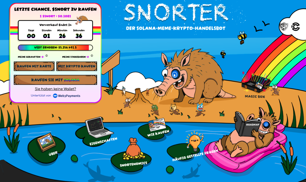 Interessierten Anlegern verbleiben nun nur noch wenige Stunden, um SNORT vor dem ersten Börsenlisting zu kaufen. Der schon seit mehreren Wochen laufende Presale befindet sich nämlich in der finalen Phase und wird in wenigen Stunden enden. Bis jetzt kamen bereits über 5 Millionen$ an Investitionen von interessierten Anlegern zusammen, die SNORT zum rabattierten Presale-Kurs von 0,1081$ gekauft haben.
