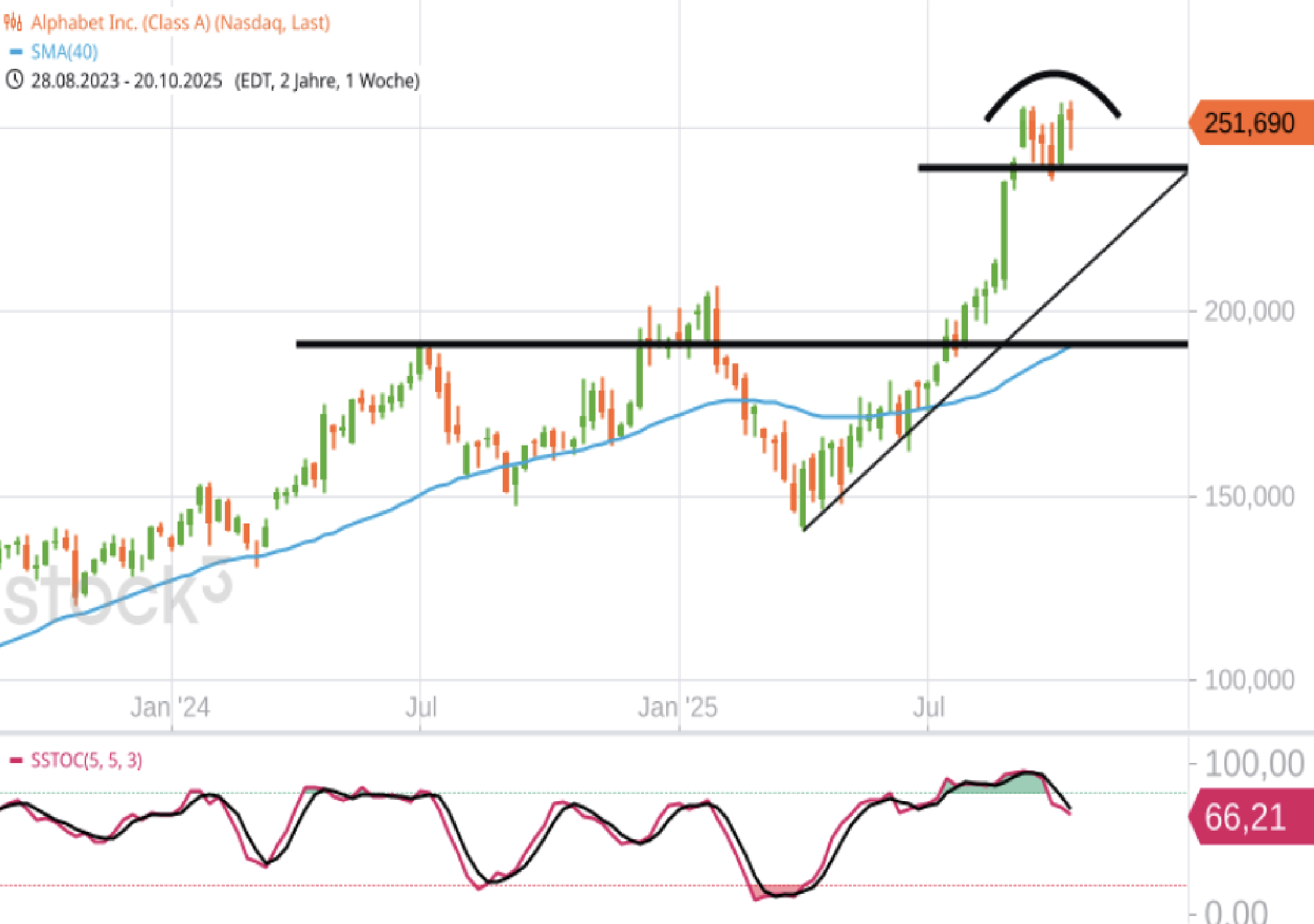 Laut Bloomberg führen Anthropic und die ALPHABET-Tochter Google Gespräche über eine Cloud-Vereinbarung im Wert von mehreren Milliarden $. Ziel ist es, Anthropic Zugang zu Googles Tensor Processing Units (TPUs) zu verschaffen - Spezialchips, die maschinelles Lernen massiv beschleunigen. Google ist bereits Investor und Cloud-Partner von Anthropic. Die Kommerzialisierung von Googles TPU-Technologie nimmt Fahrt auf. Bei der Aktie ist allerdings eine Konsolidierung fällig.