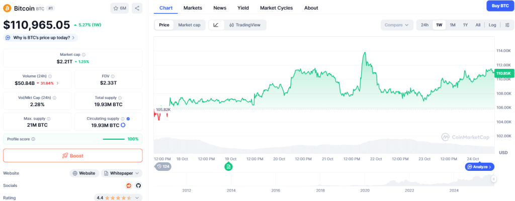 Bitcoin bleibt auch zum Wochenausklang spannend. Nach mehreren gescheiterten Anläufen über der Marke von 111.400 US-Dollar zeigt sich auf dem 4-Stunden-Chart ein zunehmend klares Bild. Die Zone zwischen 108.000 und 110.000 bleibt das Herzstück des aktuellen Setups. Der Kurs bewegt sich weiter in einer engen Range, während Trader auf den entscheidenden Impuls warten, der den Markt nach oben oder unten aus der Formation drückt.