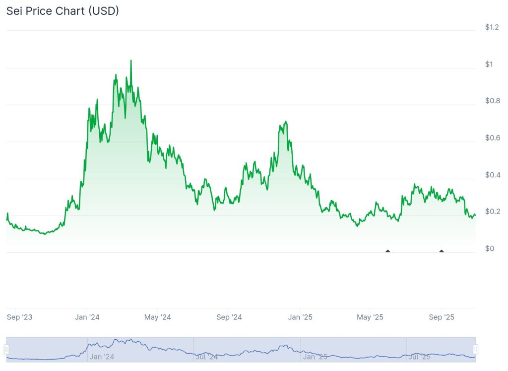 Seitdem hat sich die Nachfrage jedoch deutlich abgekühlt, und es folgte eine Reihe von tieferen Hochs und tieferen Tiefs. Im Dezember 2024 gelang es den Bullen lediglich, den Kurs auf 0,65 $ zu steigern, während die letzte signifikante Aufwärtsbewegung im Juli dieses Jahres bereits bei 0,35 $ endete. Inzwischen ist SEI im Monatsvergleich um über 25 % abgestürzt und wird derzeit direkt am wichtigen 0,20-$-Support gehandelt. Damit liegt die Marktkapitalisierung des Coins bei rund 1,25 Milliarden $, bei einem vergleichsweise niedrigen Handelsvolumen von etwa 70 Millionen $.