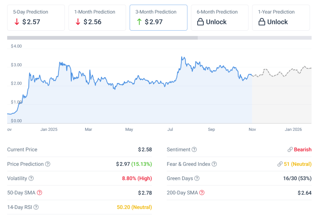 Nach der Zinssenkung der US-Notenbank zeigten Kryptowährungen ein gemischtes Bild, wobei sich XRP stabil über der Marke von 2,50 US-Dollar hielt. Die technischen Indikatoren zeigen ein neutrales Sentiment mit einem Fear-&-Greed-Index von 51, während die gleitenden Durchschnitte auf leicht steigenden Verkaufsdruck hindeuten. Die 50-Tage-Linie liegt bei 2,78 US-Dollar, die 200-Tage-Linie bei 2,64 US-Dollar, womit sich XRP nahe wichtiger Widerstände befindet.