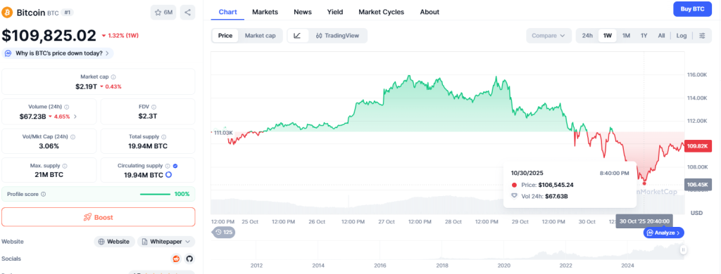 Trotz erneuter Zinssenkung der Notenbank um 25 Basispunkte und der angekündigten Rückkehr zur quantitativen Lockerung ab 1. Dezember zeigt sich Bitcoin weiterhin volatil. Der Kurs rutschte zeitweise unter 109.000 US-Dollar und testete bei 108.400 US-Dollar eine frische Unterstützung. Parallel sank die Bitcoin-Dominanz von 60 auf 59,4 Prozent - ein seltenes Phänomen, das historisch vor starken Aufwärtsbewegungen beobachtet wurde.