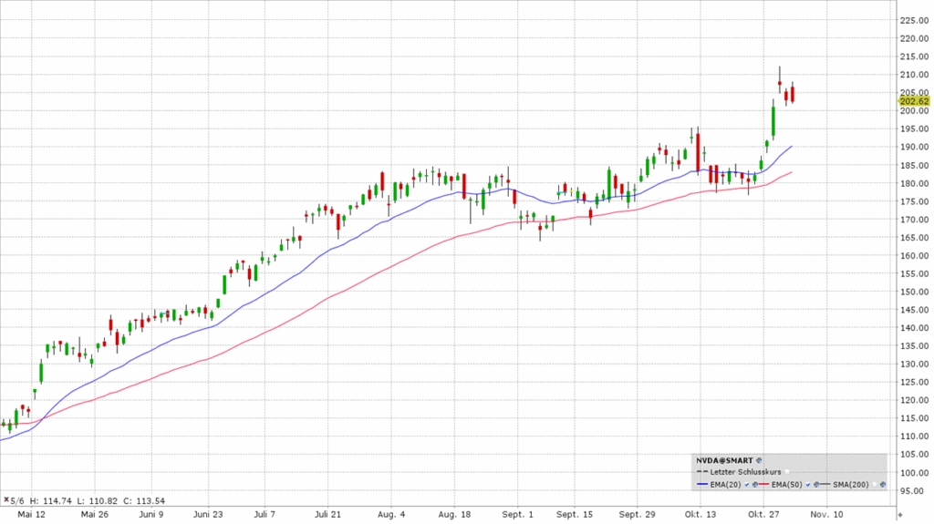 Nvidia hat kürzlich als erstes Unternehmen die 5-Billionen-Dollar-Marke bei der Marktkapitalisierung überschritten, angetrieben durch den anhaltenden KI-Boom. Jüngste Quartalszahlen zeigten eine starke operative Performance mit deutlich übertroffenen Umsätzen und Gewinnen im Vergleich zu Analystenerwartungen. Das Unternehmen tätigt Milliardeninvestitionen in die KI-Infrastruktur, darunter ein 40-Milliarden-Dollar-Deal für Aligned Data Centers und Partnerschaften wie mit Nokia. Trotz der euphorischen Kursentwicklung, die zu einem neuen Allzeithoch führte, warnen einige Analysten vor der hohen Bewertung und dem erhöhten Risiko. Die Aktie hat sich charttechnisch kürzlich aus einer Seitwärtsbewegung nach oben gelöst, was auf weiteren Schwung hindeutet.