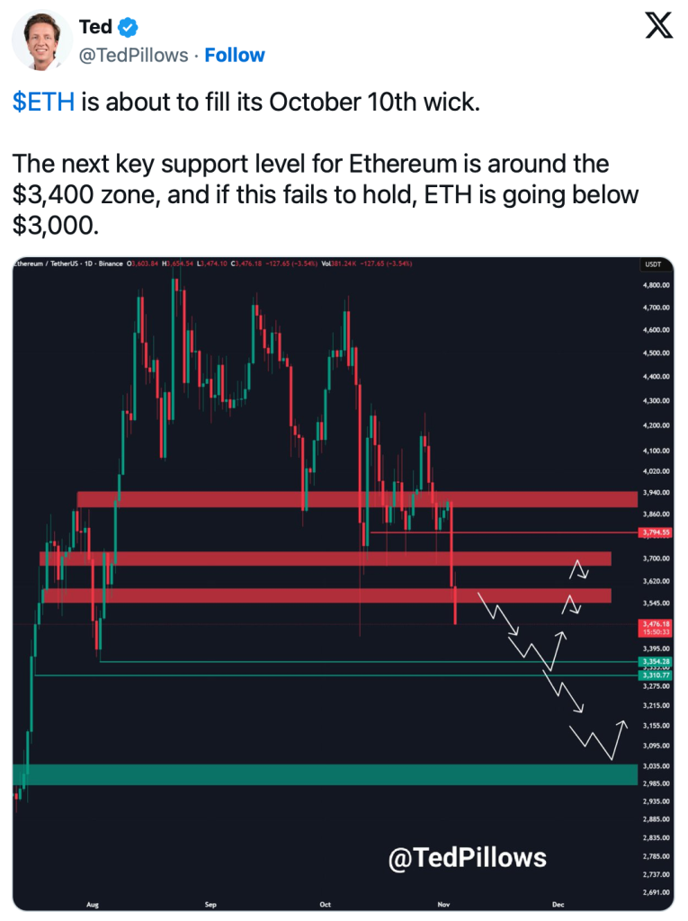 Ethereum bleibt weiter unter Druck und konnte sich trotz technischer Gegenbewegungen nicht nachhaltig stabilisieren. Nach mehreren schwachen Tagen steht der Kurs aktuell bei rund 3.560 US-Dollar. Laut jüngster Marktanalyse von mehreren Krypto-Analysten zeigt sich das gleiche Bild wie bei Bitcoin: bullische Divergenzen auf dem RSI, aber keine bestätigten Ausbrüche nach oben. Die entscheidende Zone liegt bei rund 3.750 US-Dollar, und erst ein 8-Stunden-Close oberhalb dieser Marke würde das Chartbild wieder leicht aufhellen.