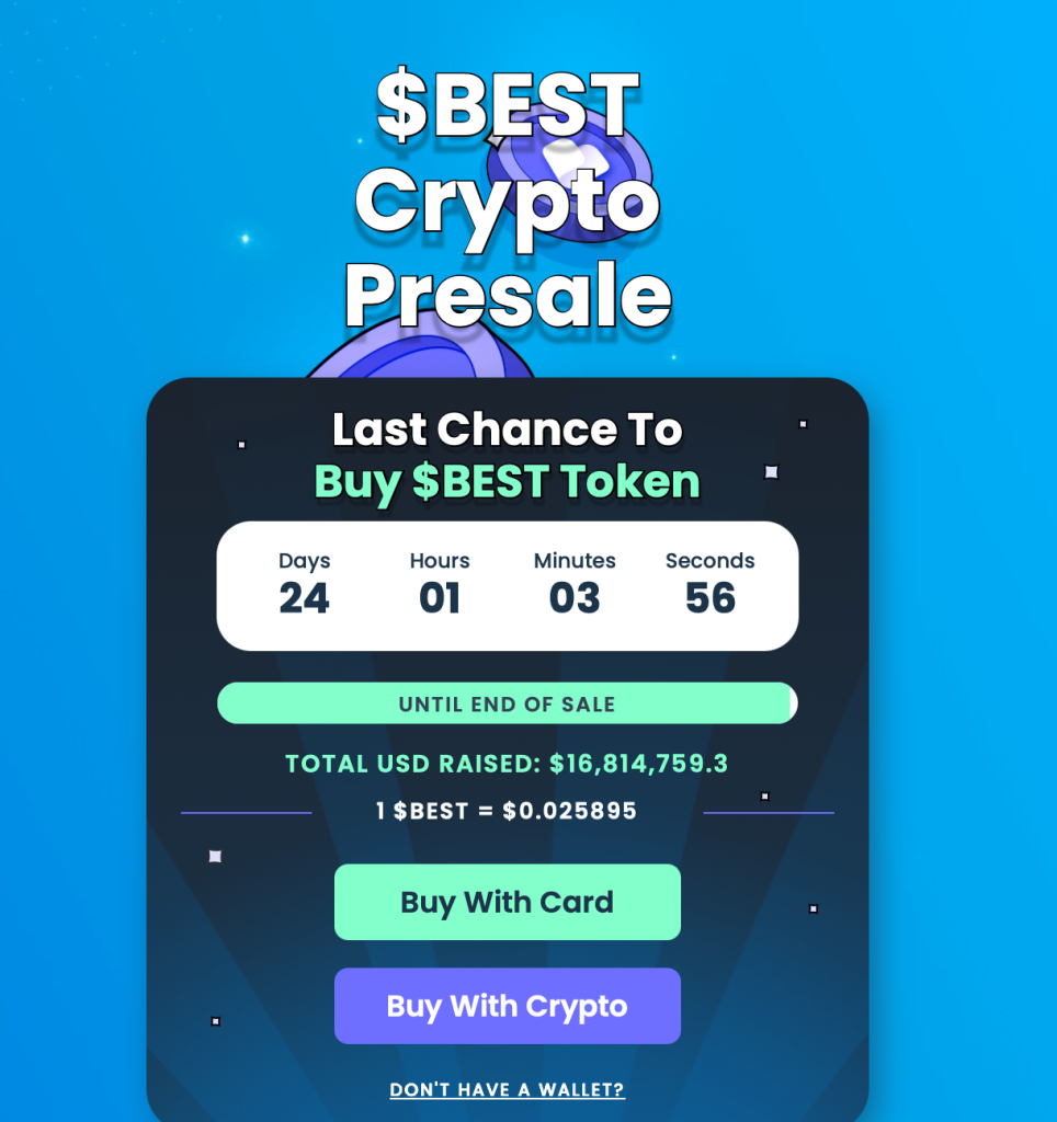 Der laufende Vorverkauf von Best Wallet Token ($BEST) endet in 24 Tagen und bietet die finale Gelegenheit, den BEST Token zum günstigsten Preis zu sichern. Der Token bildet das Herzstück des gesamten Ökosystems und bietet Zugang zu Features wie Gas-freien Transaktionen, erhöhten Staking-Yields und exklusiven Early-Access-Möglichkeiten. Best Wallet ist bereits in den App-Stores von Google Play und Apple verfügbar und gilt als eine der sichersten Non-Custodial-Wallets mit Zertifizierung von CertiK und WalletConnect.