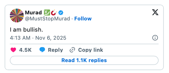 Auch wenn sich der Krypto-Markt noch immer in einer Schwächephase befindet, ist mit Murad Mahmudov einer der größten Unterstützer von Memecoins weiterhin optimistisch gestimmt, wie er auf X mitgeteilt hat.