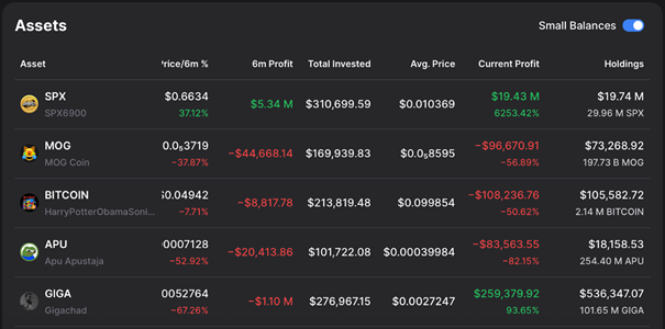 Die höchsten Gewinne hat Mahmudov mit dem Memecoin SPX6900 (SPX) verzeichnet. Bei diesem handelt es sich um einen Memetoken, welcher mit einer Kombination aus Sexwitzen und Satire über den S&P 500 ein Imperium aufgebaut hat.