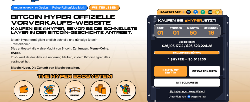 Der $HYPER-Token dient dabei als Gas-, Governance- und Staking-Token des Netzwerks. Bereits über 26 Millionen US-Dollar wurden im laufenden Presale investiert - ein klares Zeichen für das Vertrauen der Anleger.
