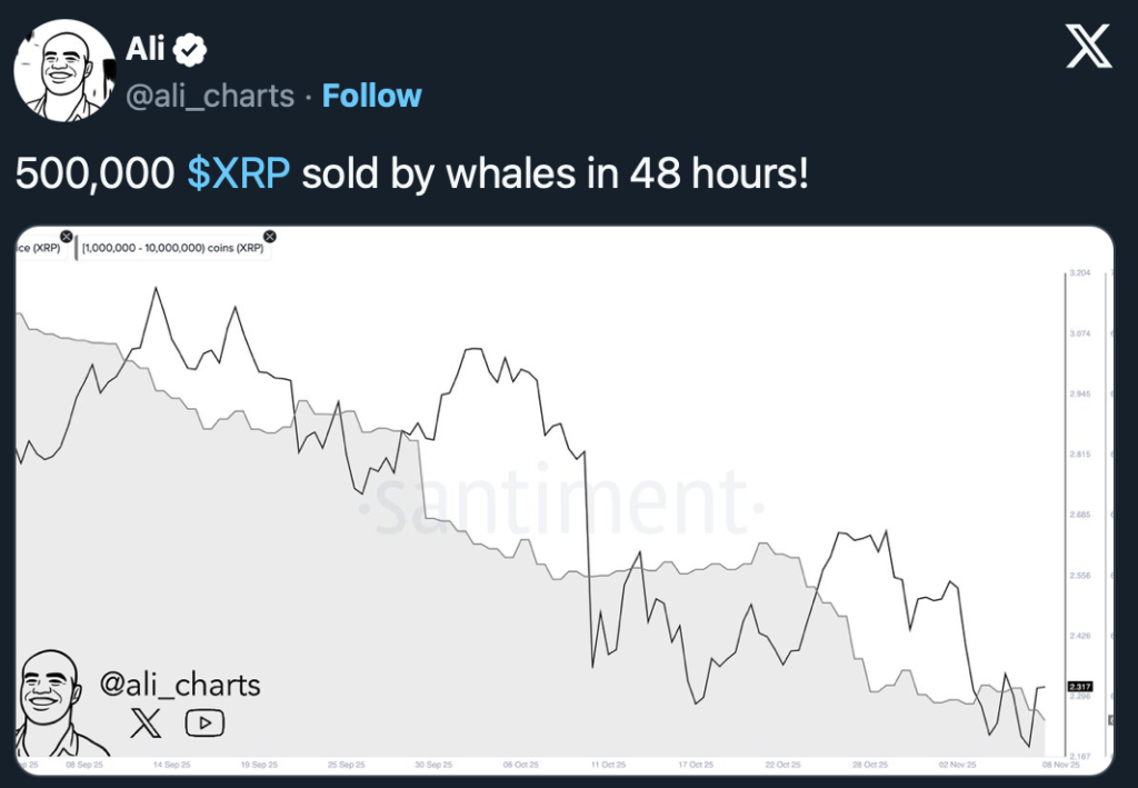 Martinez verweist zudem auf Verkäufe großer XRP-Wallets, die zwischen 1 und 10 Millionen XRP halten. Diese sogenannten "Wale" haben innerhalb von 48 Stunden rund 500.000 XRP abgestoßen - ein Signal, dass auch erfahrene Investoren kurzfristig mit weiteren Rücksetzern rechnen.