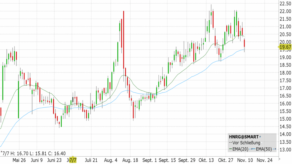 Hallador Energy ist ein US-amerikanisches Energieunternehmen, das im Illinois Basin Kohle abbaut und diese zur Stromerzeugung in eigenen und externen Kraftwerken nutzt. Es ist ein unabhängiger Stromerzeuger, der sich auf die Bereitstellung zuverlässiger, steuerbarer Energie konzentriert. 2024 ist das Ergebnis in die roten Zahlen gerutscht. Am morgigen Montag nach Börsenschluss steht die nächste Quartalsmeldung auf der Agenda. Die charttechnische Entwicklung ist interessant: ein Rücksetzer in einem intakten Aufwärtstrend!