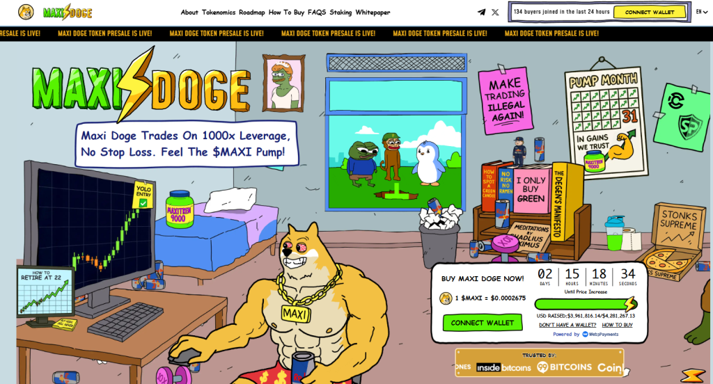 Viele in der Szene sehen MaxiDoge als den nächsten großen Kandidaten in dieser Tradition. Der Coin setzt auf pure Community-Power, kombiniert mit einem augenzwinkernden Fitness-Motiv: ein Shiba Inu als "GigaChad" des Kryptomarktes. Die Community besteht aus Krypto-Tradern und Fitness-Enthusiasten, die mit Memes, Social Challenges und einer klaren Markenidentität den Coin viral machen wollen. Der Presale läuft derzeit auf Hochtouren und hat bereits mehr als 3,9 Millionen US-Dollar eingenommen. Der aktuelle Preis liegt bei 0,0002675 US-Dollar, bevorgut 2 Tagen die nächste Stufe ansteht.