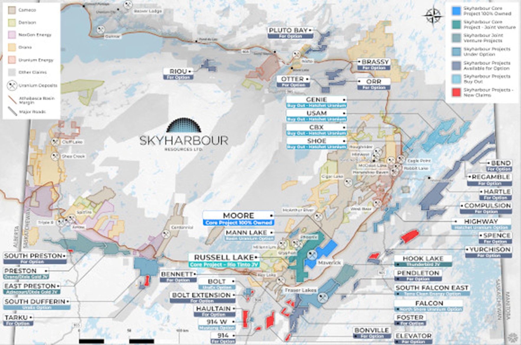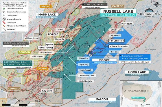 Skyharbour Resources (ISIN: CA8308166096 | WKN: A2AJ7J) konzentriert sich auf seine beiden Flaggschiffprojekte Russell und Moore Lake. Das Moore Lake-Projekt steht seit seiner Übernahme im Jahr 2016 durch eine 100-prozentige Optionsvereinbarung mit Denison Mines im Fokus von Skyharbour.