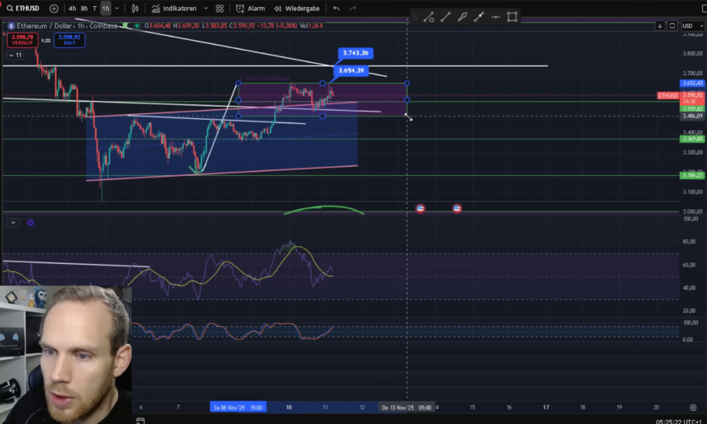 "Ethereum befindet sich in einer neutralen Zone - oberhalb von 3.450 bleibt der Trend intakt, aber ein Ausbruch über 3.730 ist nötig, um neue Impulse freizusetzen",