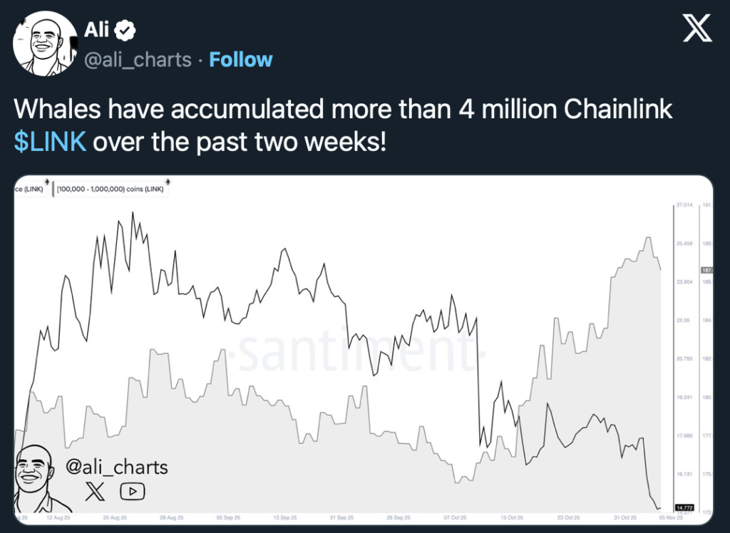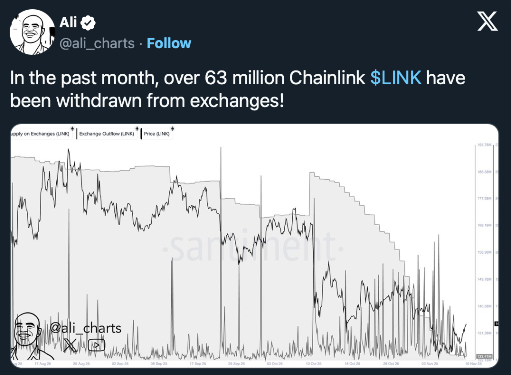 Darüber hinaus wurden im Oktober über 63 Millionen LINK von Kryptobörsen abgezogen. Solche Abflüsse gelten oft als bullisches Zeichen, da sie auf langfristige Halteabsichten hindeuten.
