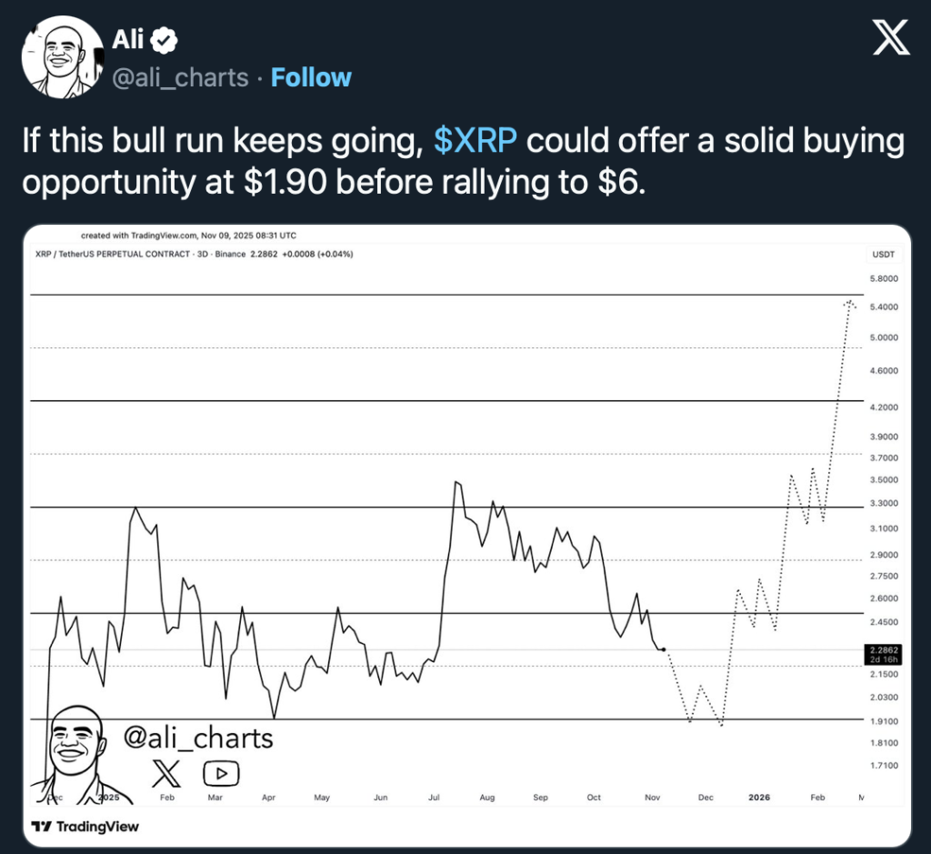Analyst Ali Martinez warnt, dass die Korrektur noch nicht vorbei sein könnte. Seiner Einschätzung zufolge sind weitere Rückgänge bis 2,0 oder sogar 1,9 US-Dollar möglich, insbesondere wenn Bitcoin weiter unter 100.000 US-Dollar fällt.