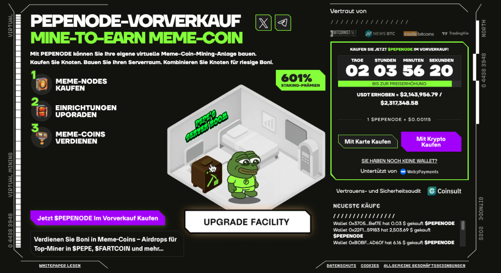 Trotz der dramatischen Entwicklung gibt es weiterhin Chancen - besonders kurzfristige. Denn man muss einen Coin nicht jahrelang halten. Genau hier kommt PEPENODE ins Spiel, ein Projekt, das im Meme-Segment derzeit ungewöhnlich starke Aufmerksamkeit erhält.