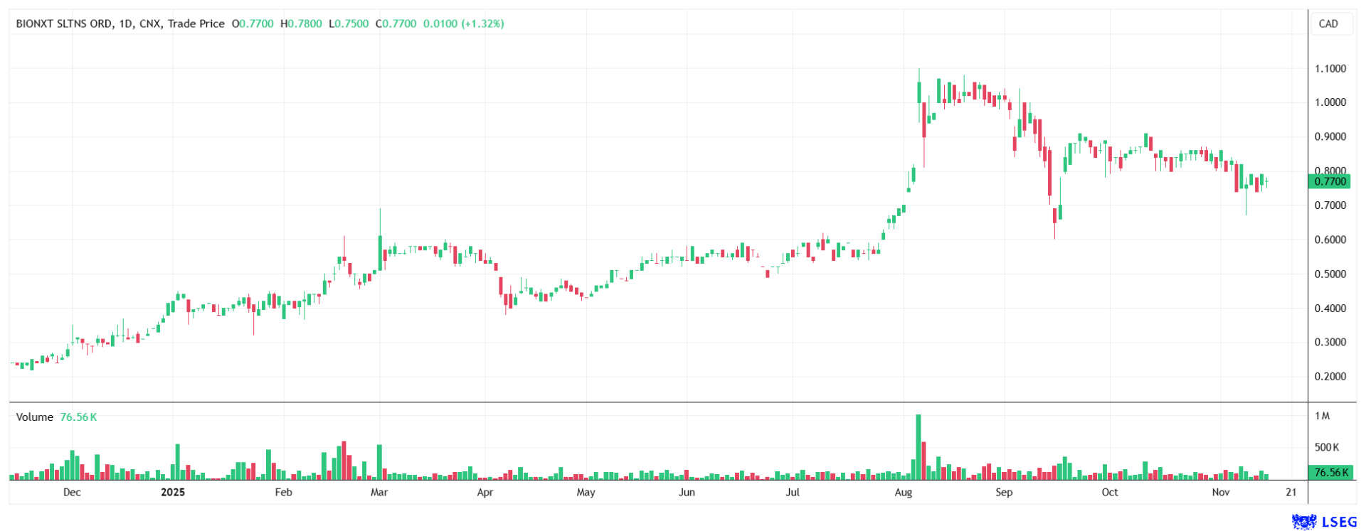 Chart BioNxt Solutions, Stand 14.11.2025, Quelle: Refinitiv