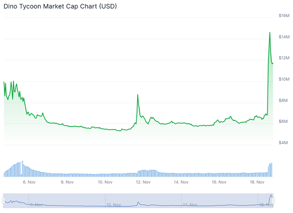 Am 4. November erfolgte das Token Generation Event von Dino Tycoon und schnell konnte dessen Coin eine beeindruckende Entwicklung zeigen. Denn seit seinem Start hat dieser ein Kursplus in Höhe von 20 % verzeichnet.