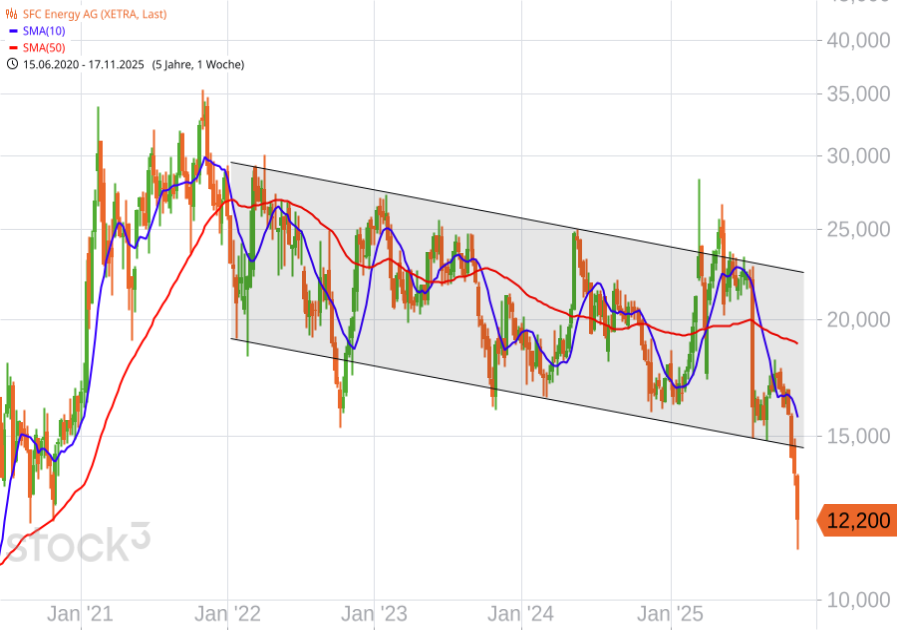 Der Umsatz soll nur noch am unteren Ende der bereits im Juli auf 146,5 bis 161 Mio. € gesenkten Prognosespanne liegen, während das bereinigte operative Ergebnis nur die untere Hälfte der Zielspanne von 13 bis 19 Mio. € erreichen soll. Schwache Nachfrage in Indien und den USA sowie negative Währungseffekte belasten die Entwicklung spürbar. Der starke Auftragseingang im dritten Quartal sorgt zwar für kurzfristige Entlastung, doch die niedrige Auslastung zeigte sich in einer nur mäßigen Bruttomarge. Analysten kritisieren zudem, dass das operative Ergebnis von einem einmaligen Bewertungseffekt profitiert hat. Die Aktie verlor am Dienstag bis zu 16 % und notierte zeitweise so niedrig wie seit gut fünf Jahren nicht mehr. Das Vertrauen hat nach der abermaligen Prognosesenkung arg gelitten.