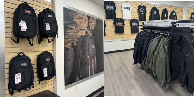 The American Rebel Store in Lenexa showcases the full Champion Safe and American Rebel product ranges, including residential and large-format safes, concealed-carry backpacks, apparel, and accessories. The showroom offers personalized consultations and in-store demonstrations so customers can see and compare safes and gear before they buy.