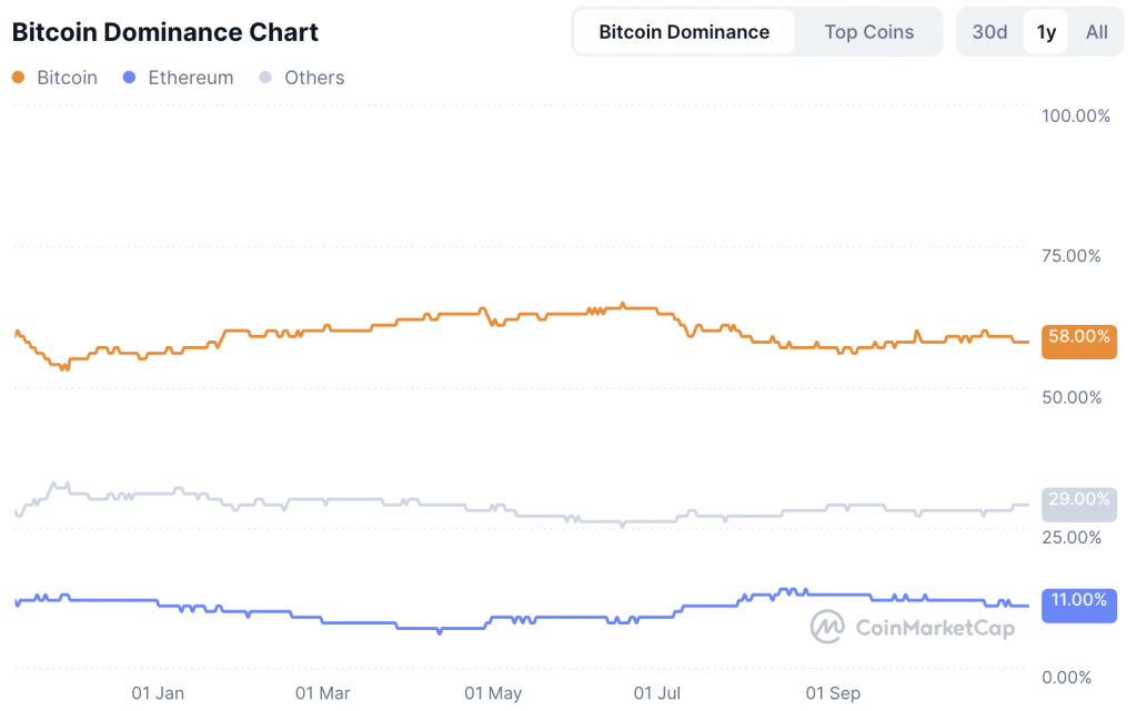 Aktuell liegt sie bei nur noch 58,6 %. Das bedeutet, dass Kapital nicht verstärkt in Bitcoin flüchtet, sondern in Altcoins verbleibt oder aktiv hineinfließt. Dieser Kapitalfluss ist ein klassischer Frühindikator für einen Trendwechsel. Viele Analysten interpretieren das als Zeichen, dass die stärkste Phase der Altcoin-Kapitulation bereits hinter uns liegt.