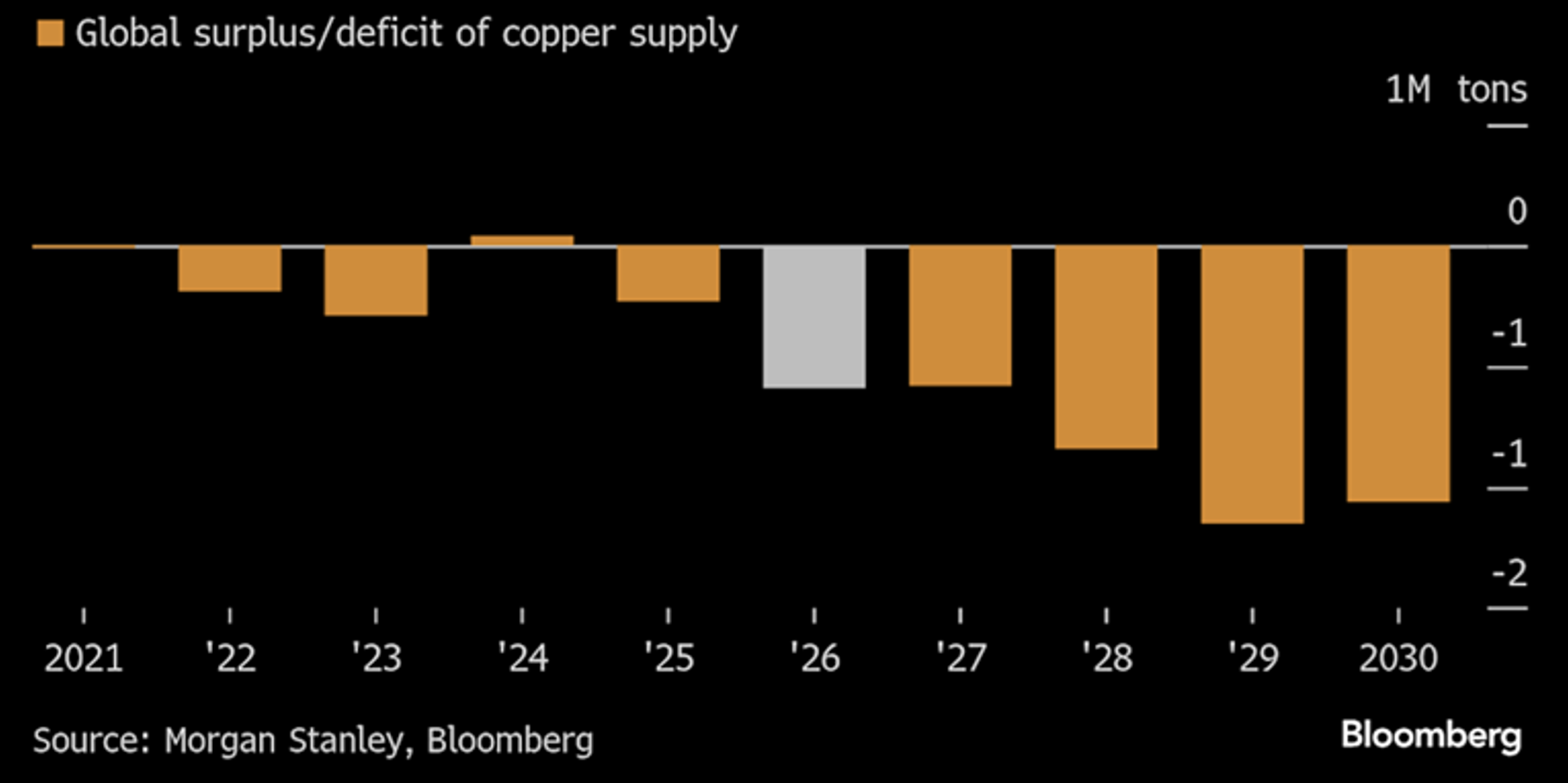 In naher Zukunft könnte sich eine klaffende Lücke zwischen Kupferangebot- und -nachfrage etablieren, getrieben durch den wachsenden industriellen Hunger nach dem roten Metall, der auf eine abnehmende Produktion trifft.
