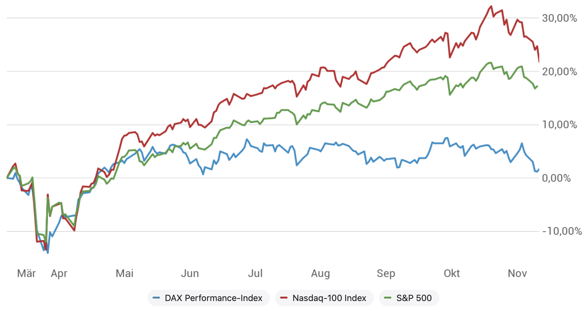 Die US-Indizes kämpfen um Ihren Aufwärtstrend, der DAX um seinen Seitwärtstrend. Die Charts zeigen es deutlich: