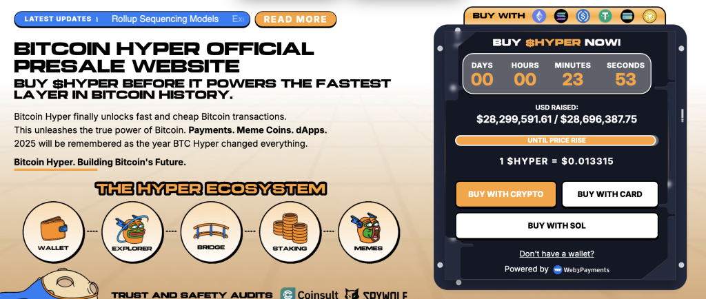 Der native Token $HYPER übernimmt auf der Chain zentrale Aufgaben wie Governance, Gebührenzahlungen, Staking und Liquiditätsbereitstellung. Die Nachfrage ist enorm: Über 28 Millionen US-Dollar flossen bereits in den laufenden Presale. Analysten sehen darin ein Indiz für einen möglichen Kurssprung beim späteren Börsenlisting.