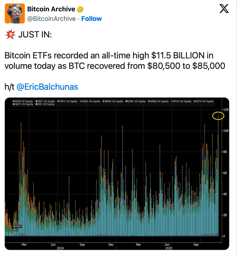 Auch die jüngsten starken Korrekturen konnten professionelle Anleger jedoch nicht von neuen Käufen abhalten. Am gestrigen Handelstag meldete Bloomberg-Analyst Eric Balchunas ein Handelsvolumen von 11,5 Milliarden US-Dollar - der höchste jemals verzeichnete Wert seit dem Start der Produkte. Rund 8 Milliarden US-Dollar davon entfielen auf den BlackRock-ETF IBIT.