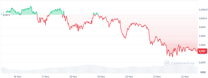 Ethereum fällt klar unter 3.000 US-Dollar