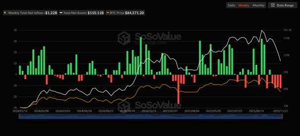 Da bei Sorgen der Investoren zuerst das Geld aus den riskanteren Vermögenswerten gezogen wird, hat sich dies insbesondere bei dem Bitcoin-Kurs und anderen Kryptowährungen stark bemerkbar gemacht. So wurden aus den US-Spot-ETFs allein während der vergangenen vier Wochen seit Ende Oktober 4,35 Mrd. USD abgezogen. Aufgrund des Coinbase-Premium-Gaps von 90 USD bauen tendenziell mehr US-Investoren ihre Bestände ab, was von den anderen nicht aufgefangen wird.