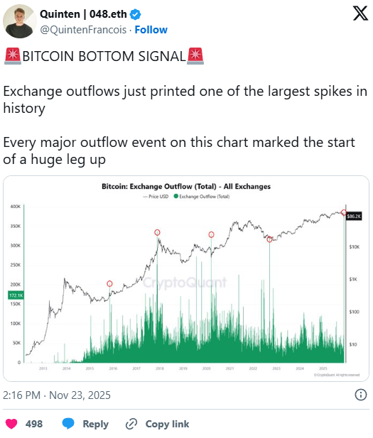 Die Stimmung am Kryptomarkt bleibt angespannt. Nach dem massiven Absturz von 126.000 auf 80.000 Dollar hat sich Bitcoin zwar leicht erholt, notiert aber weiterhin weit unter seinem Allzeithoch. Viele Anleger fürchten neue Kursverluste - doch aktuelle On-Chain-Daten zeichnen ein anderes Bild: Bitcoin werden in Rekordmengen von Börsen abgezogen. Ein Muster, das in der Vergangenheit häufig eine starke Aufwärtsbewegung angekündigt hat.