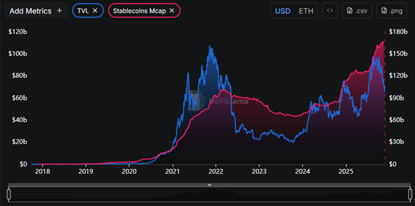 TVL und Stablecoin-Marktkapitalisierung von Ethereum | Quelle: DeFiLlama