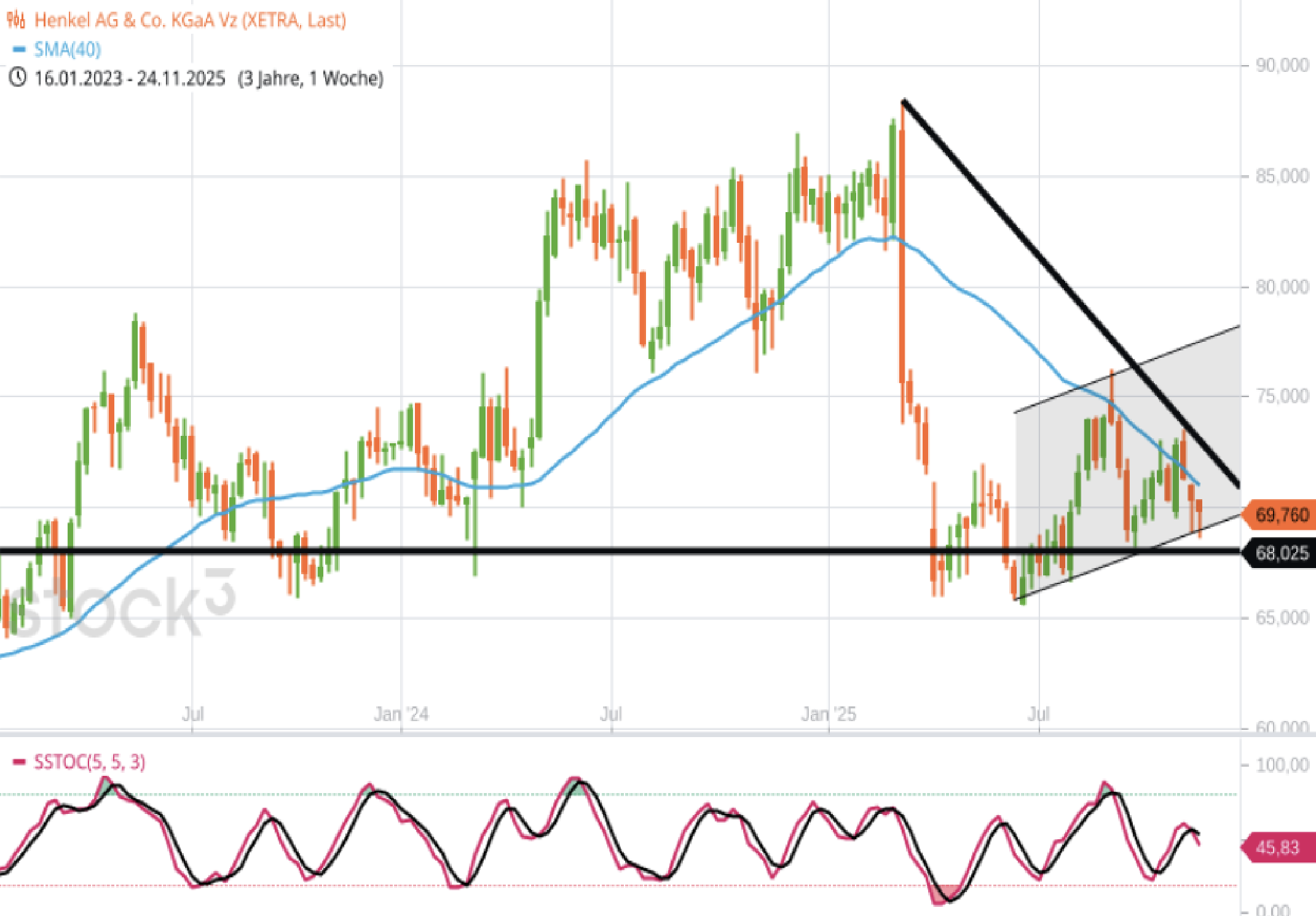 Die US-Bank hat gestern das Kursziel für HENKEL von 75 auf 65 € gesenkt und die Einstufung von "Overweight" auf "Underweight" reduziert. Der Grund: Die Analysten befürchten einen Preisdruck für das Haushaltsreiniger-Segment, der auch HENKEL betreffen würde. Ebenfalls skeptisch sind sie für Nahrungsmittelkonzerne und Spirituosenhersteller. Tabakwerte, Brauereien, der Bereich Schönheitspflege sowie Zutatenherstelleranbieter gehören dagegen im Konsumgütersektor mit Blick auf 2026 zu den Favoriten von JPMORGAN. Die günstig bewertete HENKEL-Aktie (KGV 13,7) arbeitet derzeit an einer Stabilisierung knapp oberhalb der Unterstützung bei 68 €.