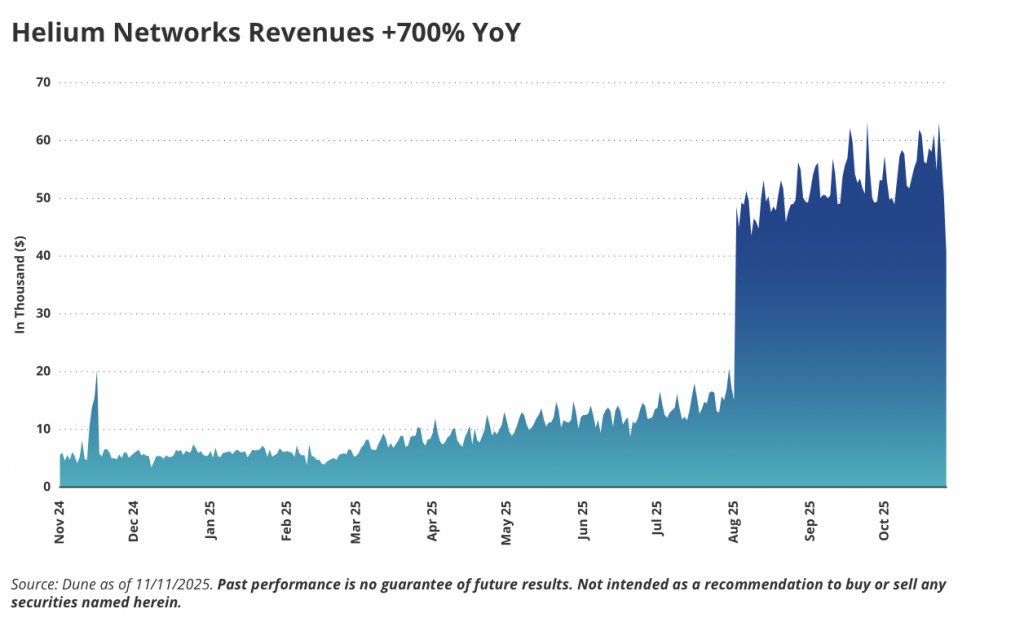 Das DePIN-Vorzeigeprojekt Helium zeigt, wie Solana als Betriebssystem für groß angelegte Infrastruktur dienen kann. Seit der Migration 2023 wurden fast eine Million Hotspot-NFTs mithilfe von State-Compression geprägt. Helium betreibt ein dezentrales 5G-Netzwerk und verbindet reale Mobilfunkdienste mit Solanas DeFi-Landschaft. Mit über 1,5 Millionen US-Dollar monatlichem Umsatz und mehr als 700 Prozent Wachstum im Jahresvergleich setzt das Projekt neue Maßstäbe.