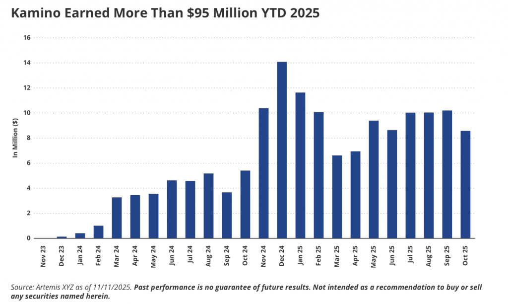 Kamino Finance bildet das Liquiditätsfundament im Solana-Ökosystem. Mit Einlagen von rund 2,74 Milliarden US-Dollar und Krediten über 1,36 Milliarden US-Dollar bietet das Protokoll ein tiefes Finanzierungssystem für Trader, Market Maker und Liquidity Provider. 95 Millionen US-Dollar Jahresumsatz und starke Netzwerkeffekte sichern Kamino einen kaum einholbaren Vorsprung gegenüber anderen Kreditprotokollen.