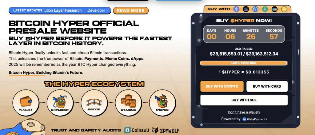 Ein Projekt sticht besonders hervor: Bitcoin Hyper. Die Layer-2-Struktur des Projekts soll die Belastung des Bitcoin-Mainnets reduzieren, ohne dessen Architektur zu verändern. Eine leistungsfähige Ausführungsebene übernimmt komplexe Prozesse, während die Sicherheit der L1 bestehen bleibt.