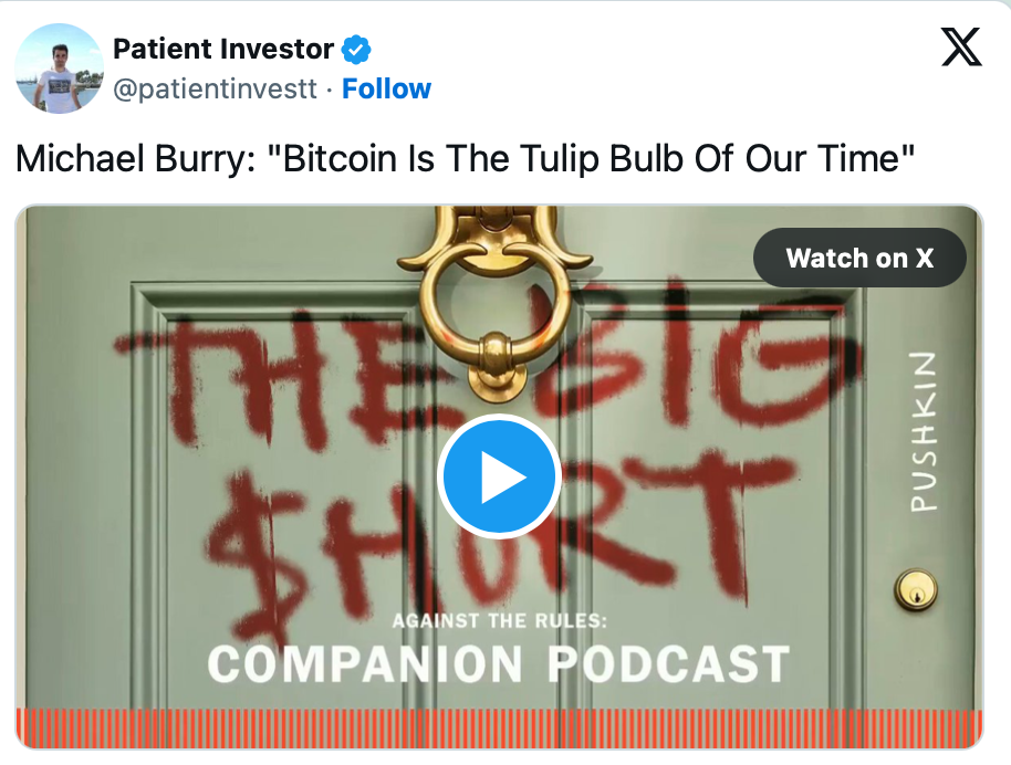 Warum Burry Bitcoin mit der Tulpenmanie vergleicht