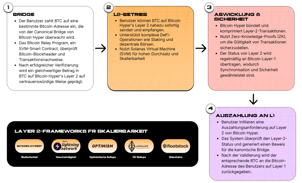 Bitcoin Hyper arbeitet im Dezember 2025 an einer solchen Layer-2-Lösung. Ziel ist es, schnellere Transaktionen, niedrigere Gebühren und flexible Anwendungen zu ermöglichen, während die Sicherheit der Bitcoin-Blockchain erhalten bleibt. Damit entsteht ein Raum für komplexe Anwendungen, die bislang vor allem auf Ethereum oder Solana zu finden waren. Durch die Integration der Solana Virtual Machine können bestehende Apps nahezu ohne Anpassung übertragen werden.