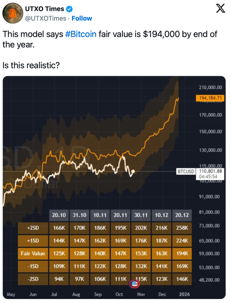 Ein Bewertungsmodell von UTXO Times veranschlagt den theoretischen Dezember-Wert bei etwa 190.000 US-Dollar. Auch wenn dieser Wert ambitioniert erscheint, basiert er auf langfristigen Abweichungsbändern statt kurzfristigen Marktbewegungen. In früheren Zyklen fiel Bitcoin wiederholt unter den modellierten Fair Value, bevor starke Trendfortsetzungen folgten.
