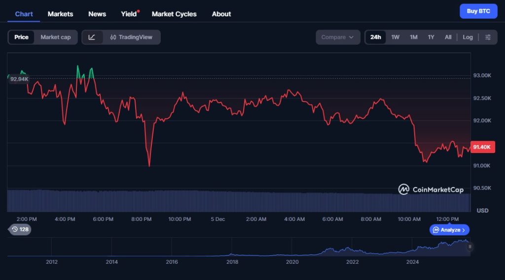 Bitcoin Preis, 6. Dezember 2025 - Quelle: CoinMarketCap