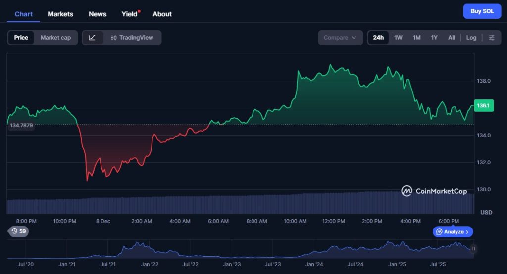 Solana Preis, 8. Dezember 2025 - Quelle: CoinMarketCap