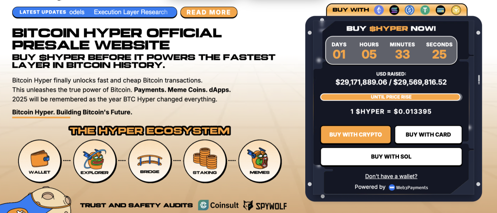 Trotz des bullischen ETH-Szenarios richten immer mehr Anleger den Blick auf ein Projekt, das eine völlig neue Entwicklungsstufe für Bitcoin einläuten soll: Bitcoin Hyper (HYPER). Während Ethereum DeFi, Staking und dApps revolutioniert hat, blieb Bitcoin bis heute weitgehend außen vor. Genau das will Bitcoin Hyper ändern.