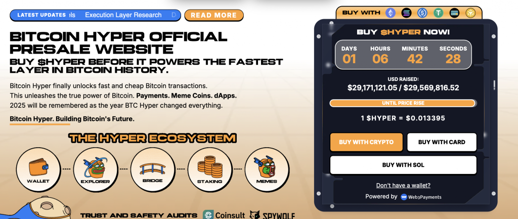 Parallel zu den Marktbewegungen rückt die Aufmerksamkeit vieler Investoren auf Bitcoin-nahe Infrastrukturprojekte wie Bitcoin Hyper (HYPER). Die Layer-2-Lösung hat sich in kurzer Zeit als eines der meistbeachteten Projekte positioniert. Sie kombiniert schnelle und günstige Transaktionen mit echter Bitcoin-Integration durch Tokenisierung.