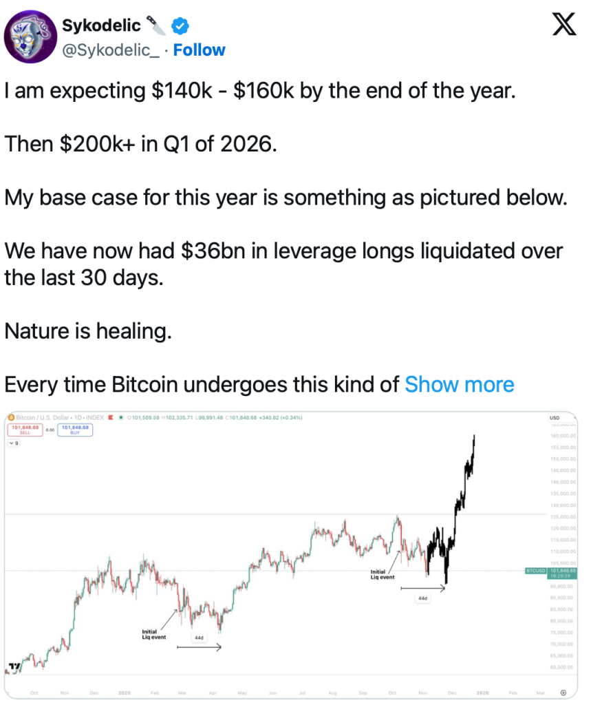 Auch makroökonomisch ergibt sich ein unterstützendes Gesamtbild. Steigende globale Liquidität, zusätzliche US-Reserven in dreistelliger Milliardenhöhe, neue fiskalische Maßnahmen in Asien und potenzielle Veränderungen an der Fed-Spitze schaffen ein Umfeld, in dem historisch selten Bärenmärkte beginnen.