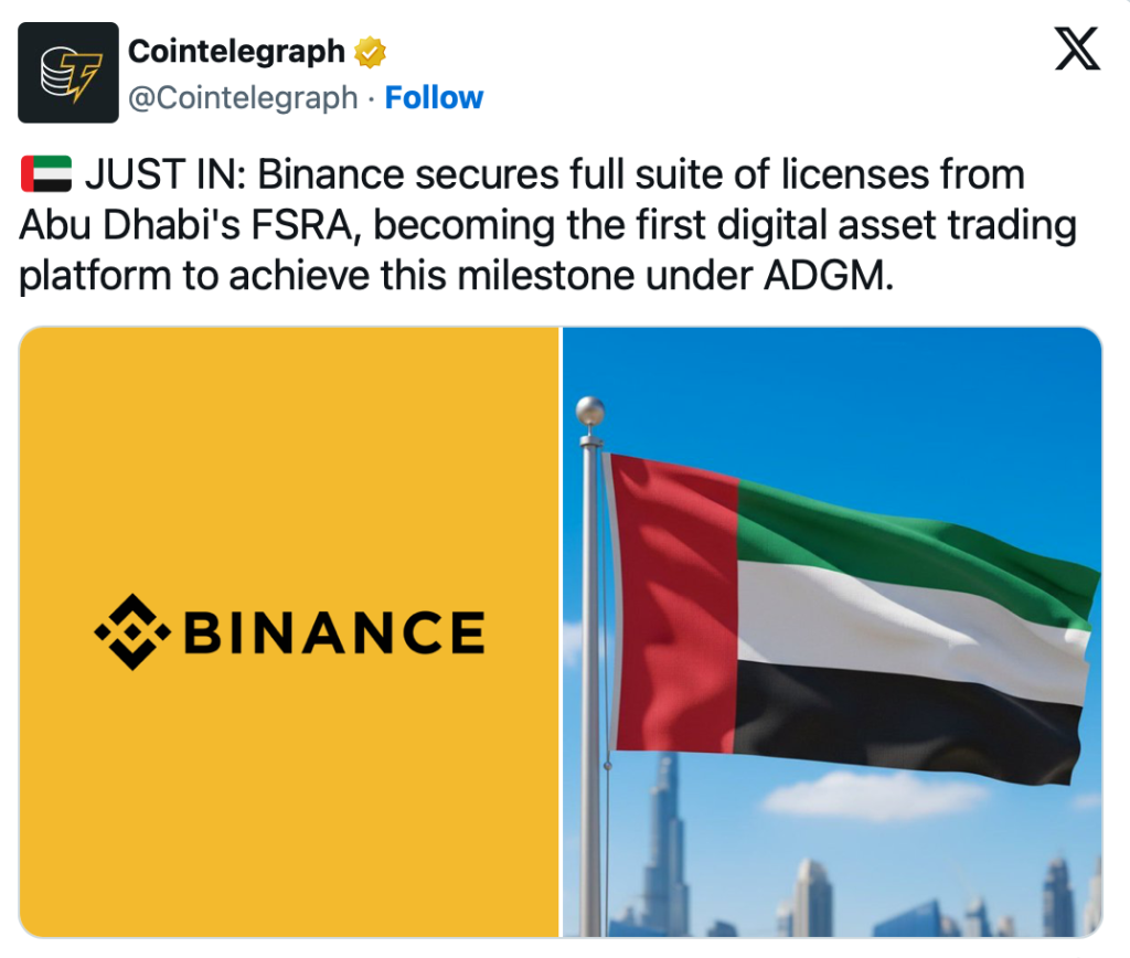 Binance erreicht einen bedeutenden Meilenstein: Als erste globale Krypto-Börse erhält das Unternehmen ein vollständiges Lizenzpaket der Financial Services Regulatory Authority (FSRA) im Abu Dhabi Global Market. Die Handelsplattform operiert damit unter einem der strengsten regulatorischen Rahmen weltweit - ein Signal mit internationaler Strahlkraft.